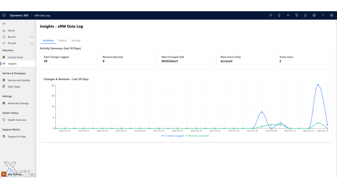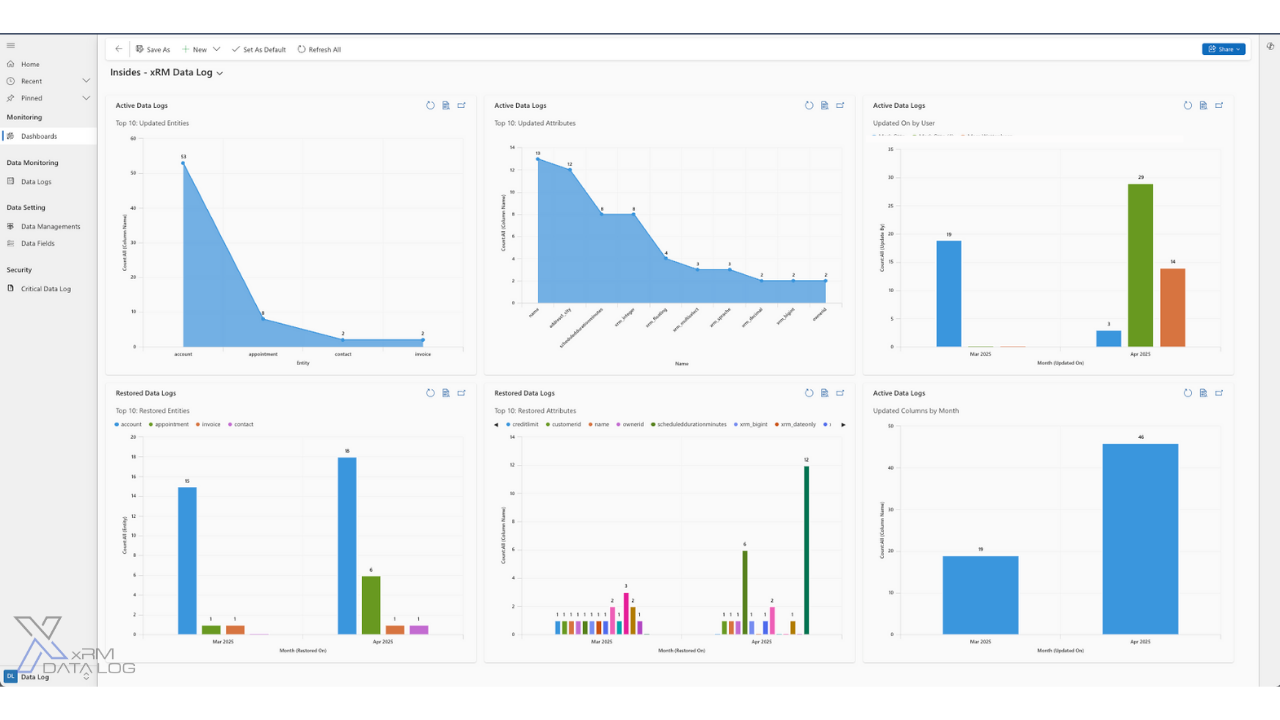 If you need to restore a specific field, the xRM Data Log solution is invaluable. With just a few clicks, you can access the audit log and determine the exact time of the change. Once identified, the solution guides you through the seamless undo process, instantly restoring the data to its previous state. The xRM Data Log solution offers comprehensive reporting capabilities that help you gain detailed insights into the change patterns of your data, allowing you to identify trends and track user activity. Furthermore, the solution integrates seamlessly with your existing systems, making it a scalable add-on for businesses of any size. Manage your xRM Data Log solution independently and at any time without having to wait for other service providers or partners.